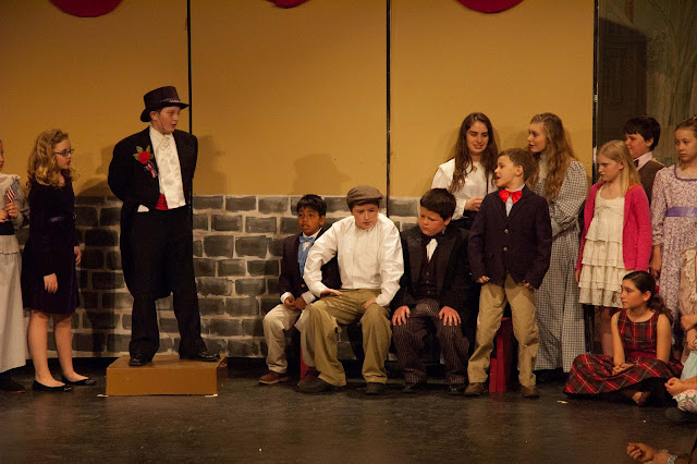 The Music Man is a very special show in our family. It was the first play I was ever in (I played a townsperson), Jeff's Grandpa Eddie once played a member of the school board/quartet in the show, and Jeff's dad played Harold Hill in middle school (opposite his sister, Sally, as Marian Paroo. That's my favorite story of all time.). My kids fell in love with The Music Man when I showed it to them in preparation for our talent show performance. When I found out a local youth theater was doing a production of the junior version, I asked the kids if they wanted to go see it. "Can we be in it?!" they asked. I tried not to do backflips. I explained that they would need to audition and that auditioning meant singing a solo in front of strangers. Chloe immediately started crying. Just thinking about it scared her to death. The next morning, she came into my room and said, "I've decided I'm going to do the show." They both worked hard and auditioned well. Chloe was cast as a townsperson and Harrison was cast as a member of the school board/quartet.